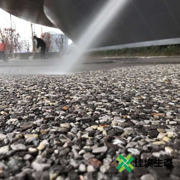 露骨料透水混凝土需要噴灑緩凝劑,過一段時(shí)間后,還需要用高壓水槍把面層的水泥漿沖洗干凈,露出石子本身的顏色。